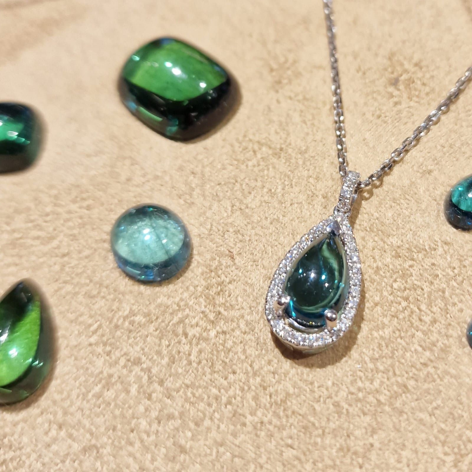 Ils m'ont présenté une palette de pierres incroyables. Leur écoute, leur professionnalisme et leur travail ont donné naissance à un magnifique pendentif ! "