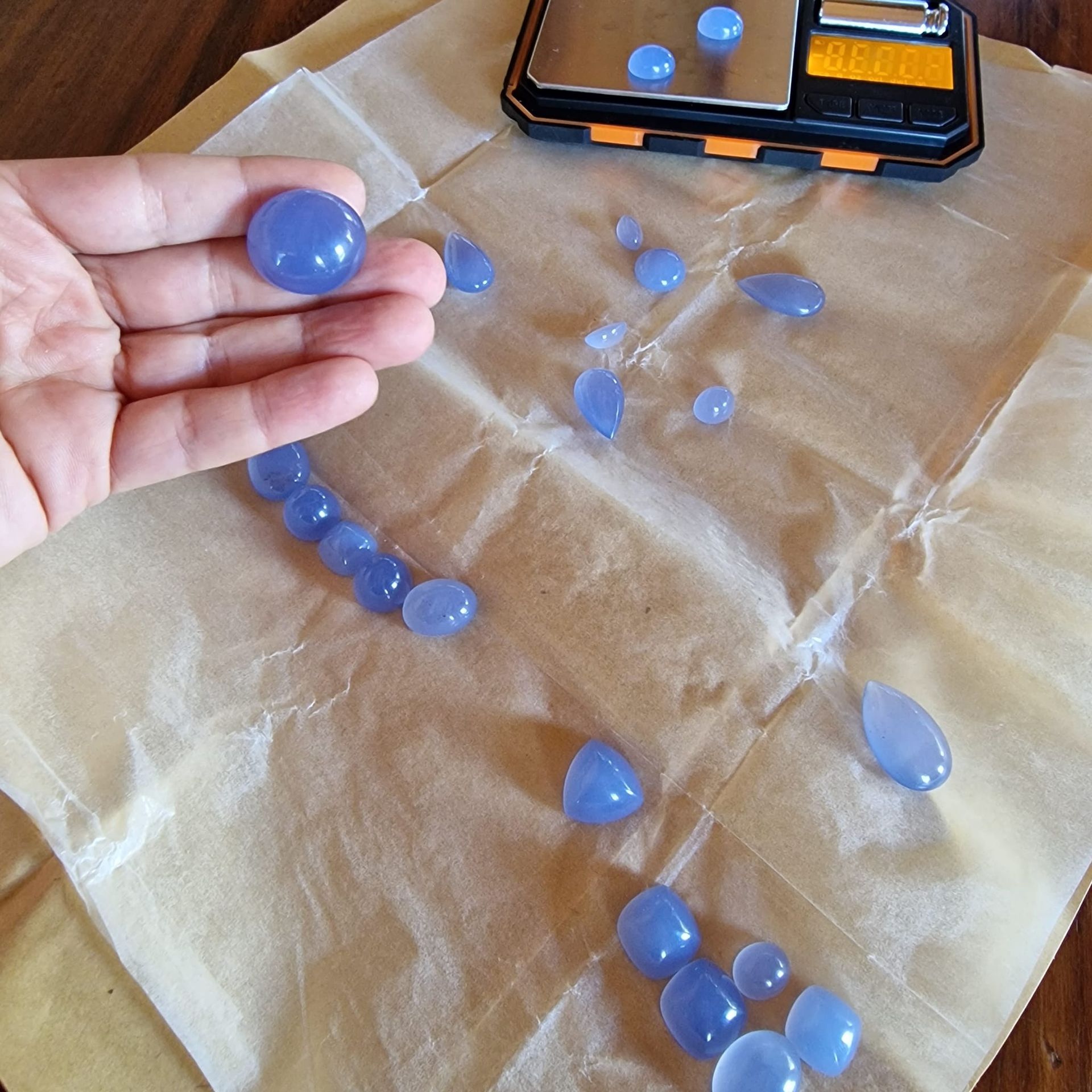 Douce et laiteuse, la calcédoine de Namibie séduit par sa teinte apaisante et son éclat velouté.